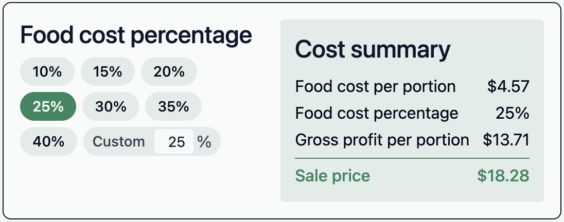 Control all the important metrics. Food cost percentage, gross margin, sale price? Piece of cake.